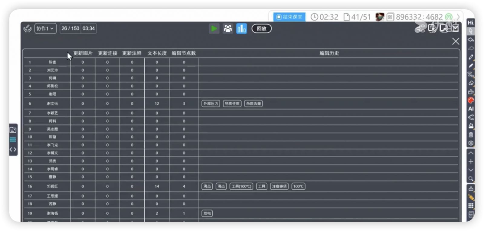 所有學(xué)生參與協(xié)作過程的貢獻記錄 ??教師查看特定節(jié)點的編輯歷史