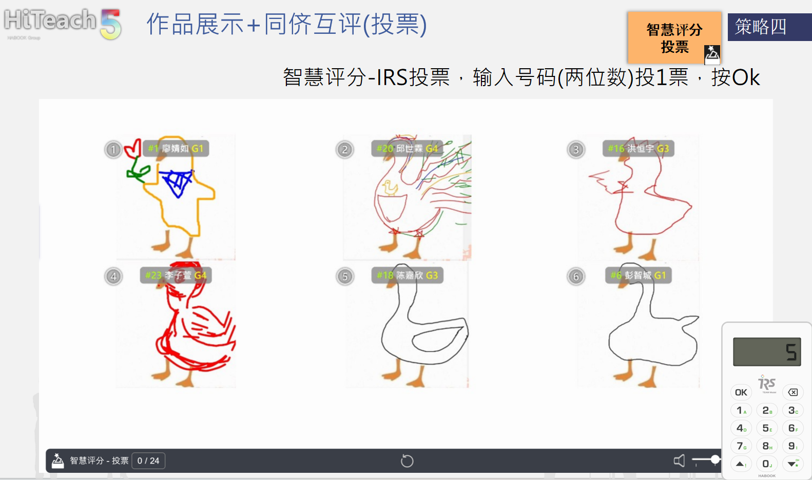 學生的作業(yè)或創(chuàng)作作品,不管是使用HiTA手機拍照,或其他圖片來源形式,發(fā)起IRS投票后,學生利用手中IRS反饋器進行選擇(投票)。