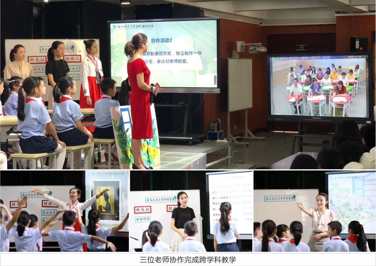 隨后,在教師教育培訓中心,車俊書記、浙江師范大學、浙江師范大學附屬丁蕙實驗小學、浙江師范大學附屬小學、衢州白云學校的老師們,觀摩了浙江師范大學附屬丁蕙實驗小學和浙江師范大學的遠程教學課。 丁蕙實驗小學作為首批醍摩豆AI智慧學校之一,常態(tài)化運用醍摩豆智慧教室系統(tǒng),并加入浙蓉遠距聯(lián)盟,定期進行遠距智慧教學教研,促進學科融合及教學提升,具有豐富的信息化教學與遠程互動經(jīng)驗積累。
