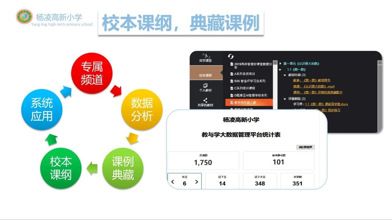 史晶校長(zhǎng)從教育OMO談起,結(jié)合楊凌高新小學(xué)多年來(lái)智慧課堂校本課綱建設(shè)經(jīng)驗(yàn),分享了疫情期間,楊凌高新小學(xué)通過(guò)校本課綱、蘇格拉底平臺(tái)實(shí)現(xiàn)課例典藏和數(shù)據(jù)分析,以校本課綱為載體促進(jìn)教師專(zhuān)業(yè)成長(zhǎng),探索出屬于楊凌高新小學(xué)的疫情專(zhuān)屬教學(xué)模式。