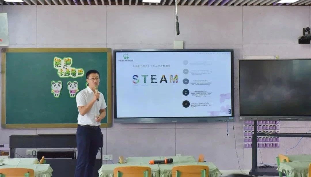 緊接著,成都師范銀都紫藤小學(xué)田再來主任圍繞學(xué)校的智慧教育發(fā)展以及Steam課程做了