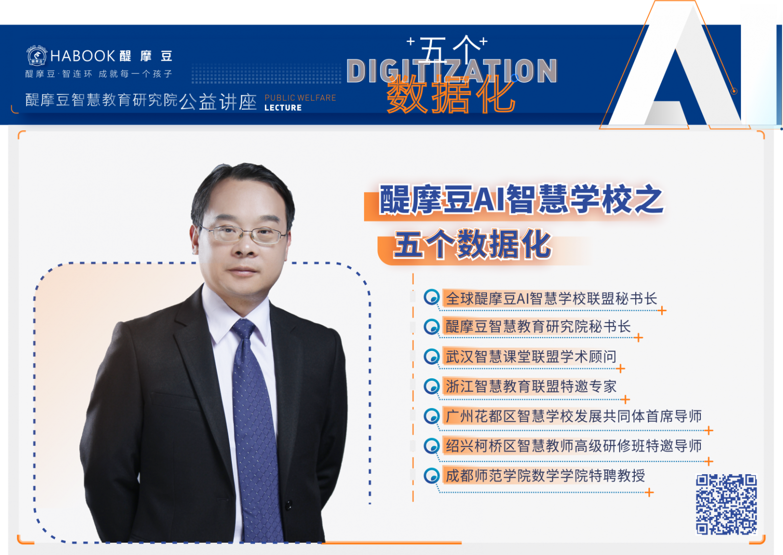 本次講座主題為“醍摩豆AI智慧學(xué)校之五個數(shù)據(jù)化”,由醍摩豆智慧教育研究院秘書長劉彬教授在線主講。