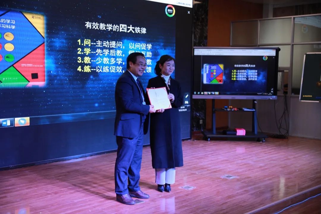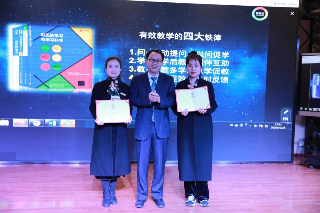 頒獎儀式 趙校長宣讀獲獎名單,劉彬教授、教師報副主編唐李佩和李校長分別為老師們進(jìn)行頒獎。