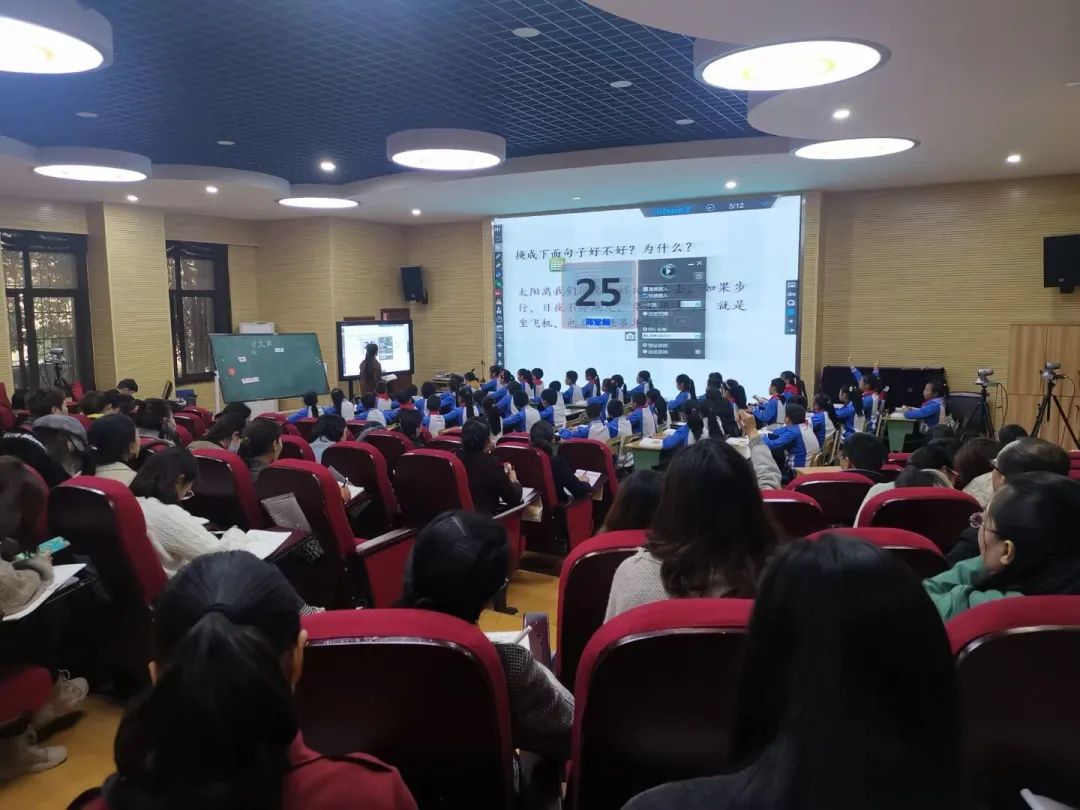 四位老師在課堂中演示了即問即答、搶權作答、計時答題、互評點贊、拍照上傳等多種技術與教學的深度融合運用。讓所有聽課人員看到了智慧課堂的魅力:教師在計時技術的驅動下進行了精準教學,在統(tǒng)計圖的分析中及時了解了學情,學生在搶權作答和互評環(huán)節(jié)中充分參與,積極分享,這樣的智慧課堂大大提高了教學效率,突出了學生的主體地位。