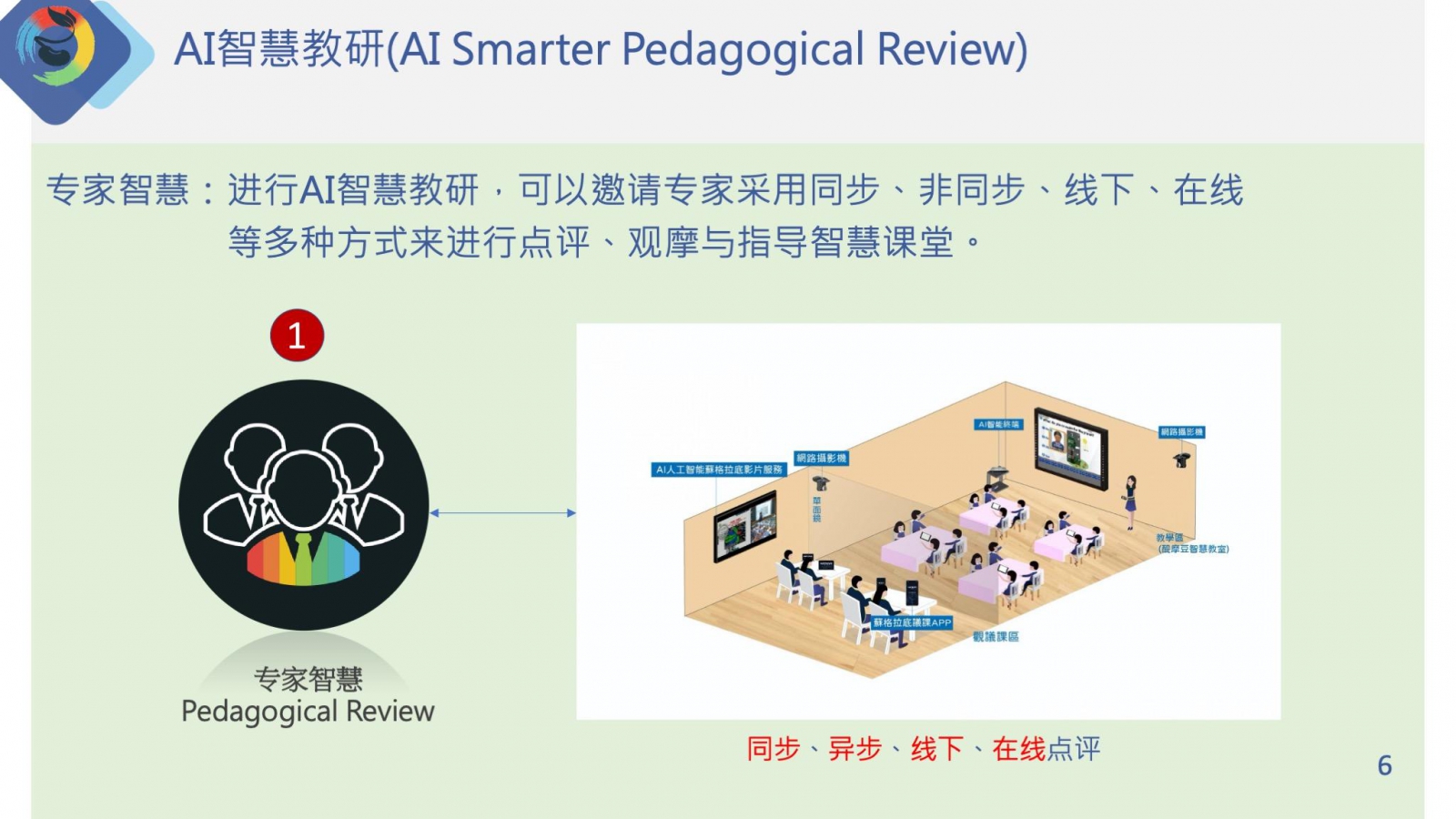 專家智慧:進(jìn)行AI智慧教研,可以邀請(qǐng)專家采用同步、非同步、線下、線上等多種方式來進(jìn)行點(diǎn)評(píng)、觀摩與指導(dǎo)智慧課堂。