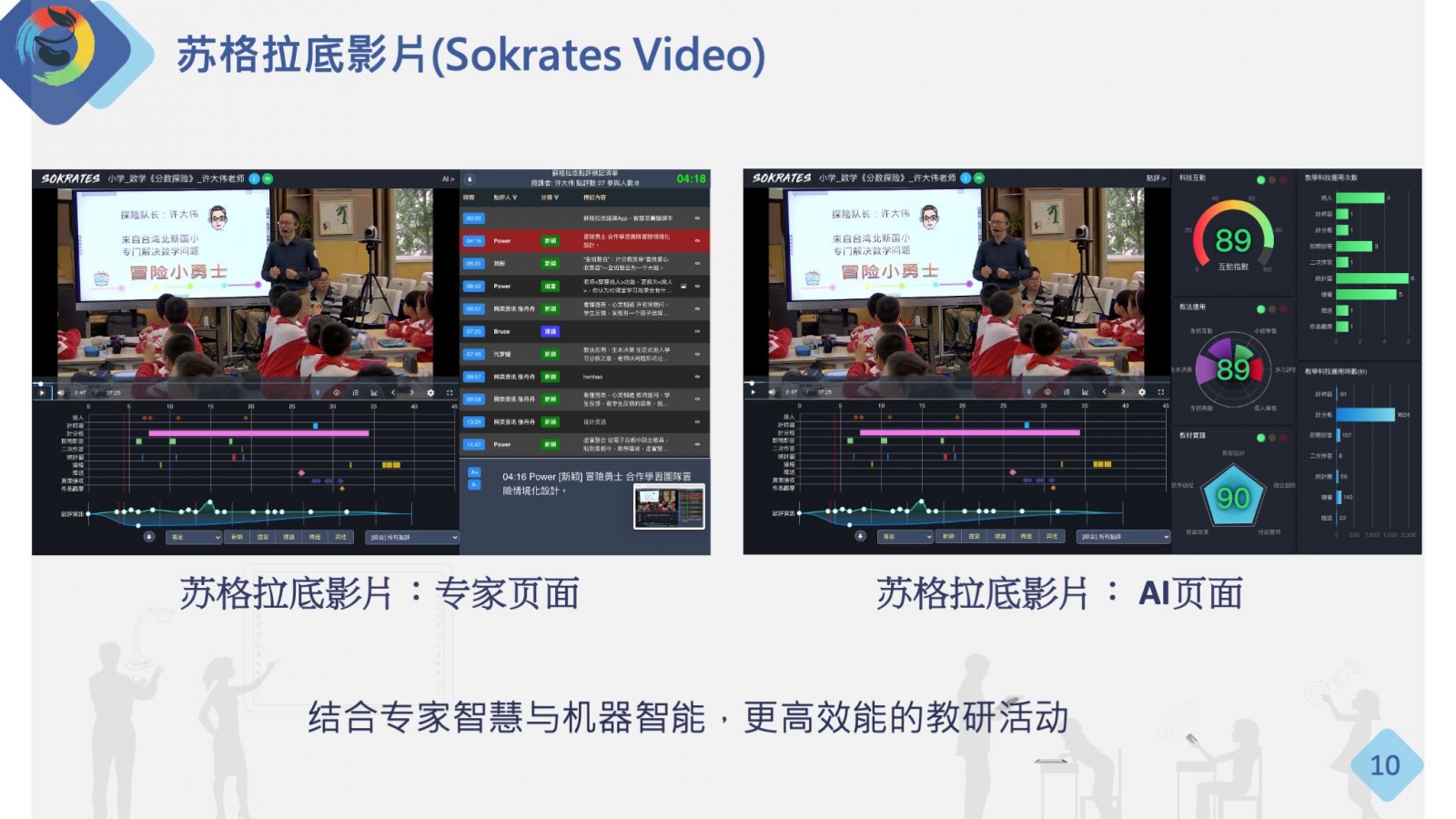蘇格拉底影片有專家頁(yè)面和AI頁(yè)面,是結(jié)合專家智慧與機(jī)器智能,發(fā)展更高效能教研活動(dòng)的容器。