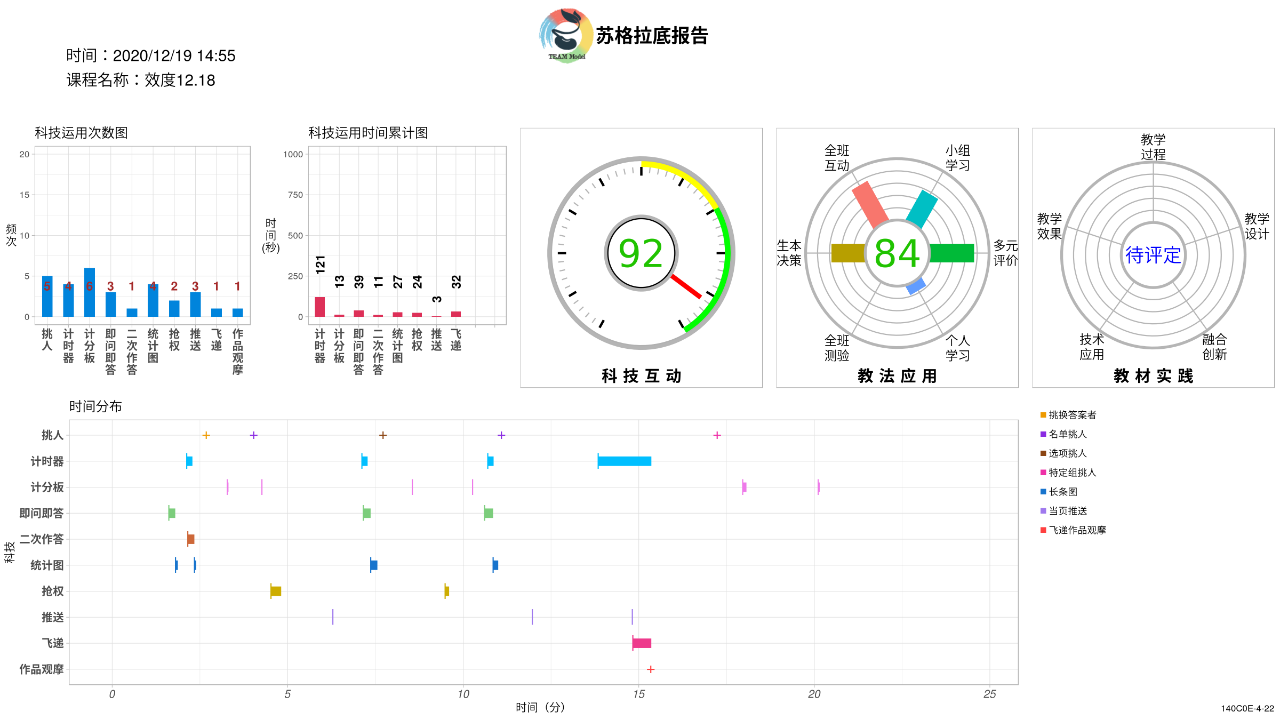 大賽以“初心不改,創(chuàng)新不斷”為主題,繼續(xù)采用專家評分、現(xiàn)場觀摩師生評分與AI蘇格拉底系統(tǒng)人工智能評分相結(jié)合。其中,各專家評委評分平均分(占比40%)、全場觀摩師生評分平均分(占比20%)、以及AI人工智能的評分環(huán)節(jié)(占比40%),通過上傳該節(jié)課的數(shù)據(jù)至AI蘇格拉底平臺,人工智能系統(tǒng)就會對課程教學(xué)的“科技互動”和“教法應(yīng)用”兩個維度給出評分。