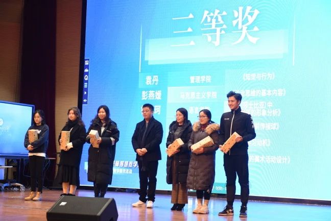 數(shù)學(xué)與信息科學(xué)學(xué)院張艷瓊、美術(shù)與設(shè)計學(xué)院俞明明、康復(fù)科學(xué)學(xué)院宋秀麗等3名教師榮獲大賽一等獎,特殊教育學(xué)院孫敏、語言學(xué)院劉瑩、數(shù)學(xué)與信息科學(xué)學(xué)院韓雪、美術(shù)與設(shè)計學(xué)院陳杰等4名教師榮獲二等獎,管理學(xué)院袁丹、馬克思主義學(xué)院彭燕媛、語言學(xué)院楊丹珂、體育學(xué)院劉皓愉、教育科學(xué)學(xué)院許楊、教育科學(xué)學(xué)院杜婧等6名教師榮獲三等獎。