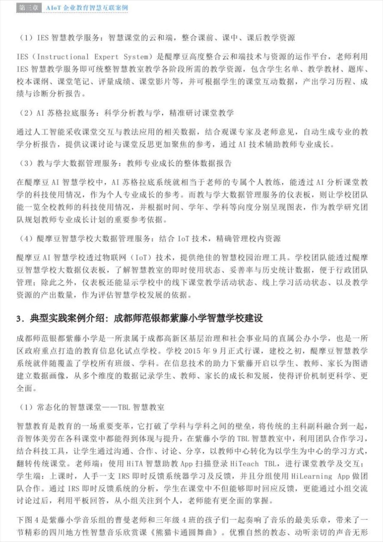 下面,小編帶大家一起詳細(xì)了解一下藍(lán)皮書(shū)中醍摩豆AI智慧學(xué)校成都師范銀都紫藤小學(xué)的案例介紹: