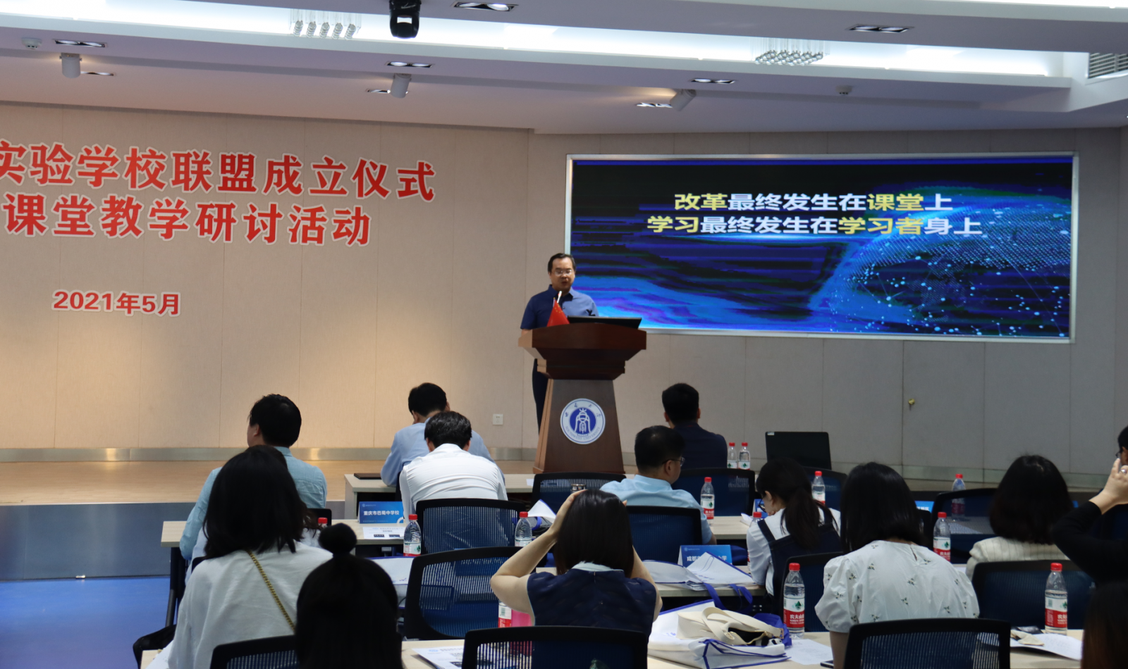 開幕式上,西南大學(xué)教育學(xué)部、原黨委書記韓仁友研究員作了開幕致辭。他表示“智慧教學(xué)實(shí)驗(yàn)學(xué)校聯(lián)盟”的成立是由高等院校為組織單位、基礎(chǔ)教育學(xué)校為成員單位,以搭建智慧學(xué)校發(fā)展良好合作平臺(tái)為目標(biāo)的智慧教學(xué)實(shí)驗(yàn)學(xué)校聯(lián)盟。 展示課環(huán)節(jié),活動(dòng)現(xiàn)場(chǎng)播放了一節(jié)成都師范銀都紫藤小學(xué)傅越老師的智慧課例,嘉賓們通過觀摩課例現(xiàn)場(chǎng)進(jìn)行打點(diǎn)標(biāo)記,同步議課,基于平臺(tái),教學(xué)數(shù)據(jù)、評(píng)課數(shù)據(jù)一目了然,智慧教學(xué)形態(tài)初具。傅越老師是西南大學(xué)教育學(xué)部畢業(yè)的碩士研究生,也是紫藤小學(xué)一名年輕優(yōu)秀的青年教師,此次帶著智慧課例回到母校,是智慧教研助力教師成長(zhǎng)的見證。 成都師范銀都紫藤小學(xué)黃敏麗校長(zhǎng)以《智數(shù)據(jù) 慧成長(zhǎng)》為題,分享了紫藤小學(xué)教學(xué)成果。黃校長(zhǎng)聚焦教師個(gè)性化集群式發(fā)展,介紹了紫藤小學(xué)教師發(fā)展的“三智一特”進(jìn)階機(jī)制、同課同構(gòu)及泛在研修模式。技術(shù)賦能,變革學(xué)與教方式;數(shù)據(jù)畫像,精準(zhǔn)優(yōu)化師生評(píng)價(jià)。黃校長(zhǎng)認(rèn)為,在智慧教育的探索之路上,因?yàn)橛兄就篮系闹腔弁耍磥斫逃男聵討B(tài)必將逐步顯現(xiàn)。 西南大學(xué)教育學(xué)部羅生全教授做《智能技術(shù)與智慧教學(xué)》專題報(bào)告。羅教授從智能技術(shù)的教學(xué)應(yīng)用緣起,智能技術(shù)支持下的智慧教學(xué)新認(rèn)識(shí)以及智能技術(shù)支持智慧教學(xué)的新方向三個(gè)維度為大家進(jìn)行了深入解讀,引領(lǐng)各聯(lián)盟學(xué)校展望未來教育的方向,也提出了聯(lián)盟開展實(shí)踐研究的有效路徑。 重慶市巴蜀小學(xué)執(zhí)行校長(zhǎng)令狐林分享了學(xué)校智慧教育成果,主題為《技術(shù)賦能,泛在學(xué)習(xí)——巴蜀小學(xué)的智慧教學(xué)實(shí)踐探索》。他指出在新一輪的智慧教育建設(shè)應(yīng)用中,巴蜀小學(xué)通過泛在學(xué)習(xí)的實(shí)踐研究變革育人方式,培養(yǎng)學(xué)生自主學(xué)習(xí)習(xí)慣,提升學(xué)生的自主學(xué)習(xí)能力,從而助力學(xué)生的個(gè)性化學(xué)習(xí)成長(zhǎng)。 成都市武侯區(qū)西川實(shí)驗(yàn)學(xué)校李敏副校長(zhǎng)以《用智慧課堂 做智慧教育》為題,從西川實(shí)驗(yàn)學(xué)校的初衷、實(shí)踐和體會(huì)三個(gè)方面進(jìn)行了系統(tǒng)闡述,指出智慧課堂就是要讓課堂有數(shù)據(jù)可用,讓數(shù)據(jù)有用,在西川實(shí)驗(yàn)學(xué)校,課堂中技術(shù)賦能已經(jīng)成為教學(xué)常態(tài),并從常態(tài)化應(yīng)用到精準(zhǔn)使用,精研學(xué)情,實(shí)現(xiàn)個(gè)性化學(xué)習(xí);實(shí)證回顧,讓管、培、研提質(zhì)增效。 醍摩豆智慧教育研究院劉彬教授在報(bào)告中指出:技術(shù)賦能,“教、學(xué)、研”必將迎來新的變革,智慧教學(xué)實(shí)驗(yàn)學(xué)校聯(lián)盟是創(chuàng)新篤行的先行者,定會(huì)在新時(shí)代開啟新篇章。 隨后,西南大學(xué)教育學(xué)部羅生全教授、醍摩豆智慧教育研究院陳權(quán)先生共同為西南大學(xué)智能化教學(xué)分析實(shí)驗(yàn)室揭牌。該實(shí)驗(yàn)室集成運(yùn)用AI人工智能、大數(shù)據(jù)、云計(jì)算等前沿技術(shù),具有現(xiàn)代化、智能化、國(guó)際化基本特征。 活動(dòng)的最后,也是本次會(huì)議的重頭戲,羅生全教授為聯(lián)盟學(xué)校頒發(fā)理事單位證書,“智慧教學(xué)實(shí)驗(yàn)學(xué)校聯(lián)盟”宣告正式成立。