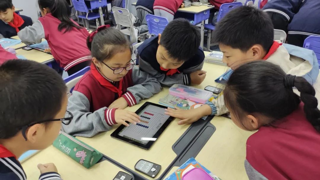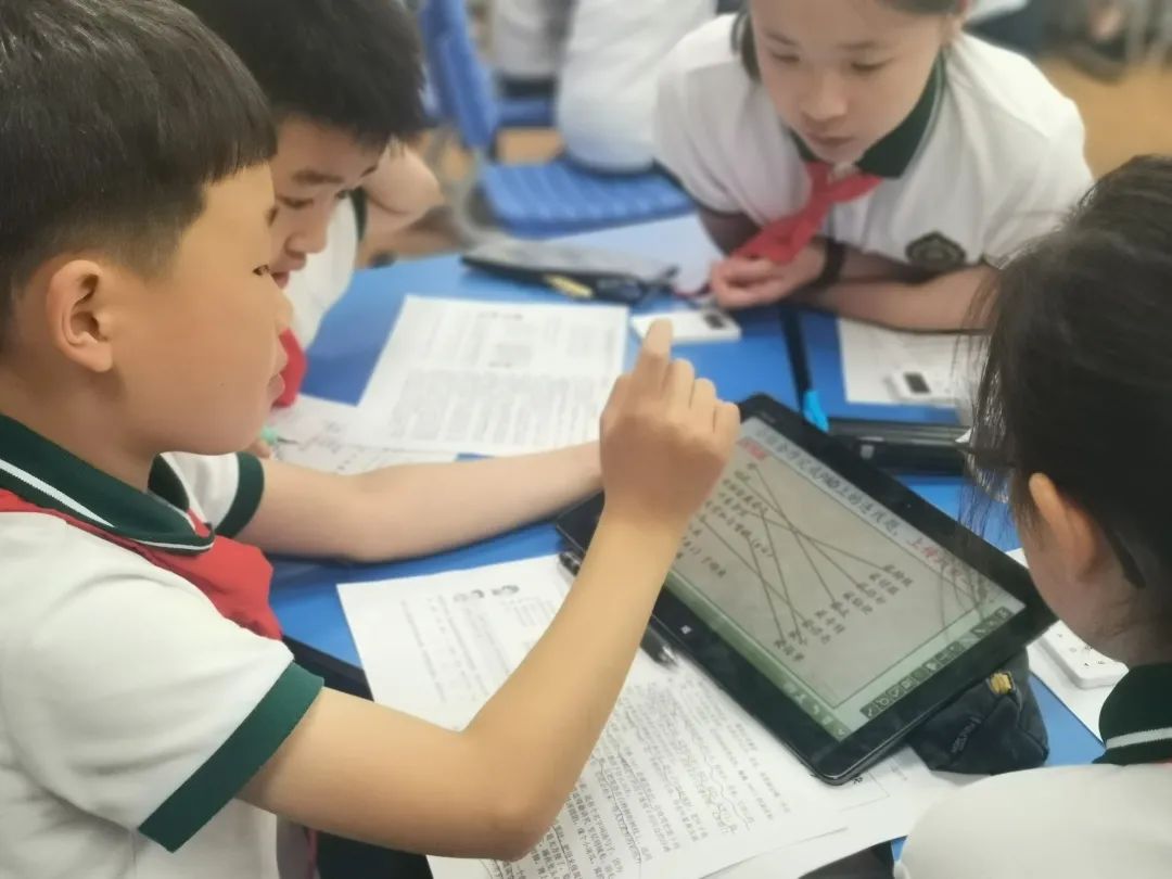 首先,鄞州區(qū)五鄉(xiāng)鎮(zhèn)貴玉小學(xué)的孫凌雁老師和東吳鎮(zhèn)中心小學(xué)的陳凌燕老師合作開設(shè)的一節(jié)語文閱讀策略課《什么比獵豹的速度更快》。課堂中,孫老師讓每位學(xué)生通過IRS答題器選擇,通過實(shí)時(shí)統(tǒng)計(jì)呈現(xiàn)出的柱狀圖,直觀地顯示各個(gè)選項(xiàng)的人數(shù),從數(shù)據(jù)上對(duì)兩地學(xué)情有精確的了解。在對(duì)文本學(xué)習(xí)的過程中,每個(gè)小組一臺(tái)智慧教學(xué)終端,兩地的孩子們可以將自己的作品進(jìn)行即時(shí)呈現(xiàn),共享共學(xué),不僅讓課堂同步,還讓學(xué)習(xí)數(shù)據(jù)同步呈現(xiàn)與共進(jìn)。