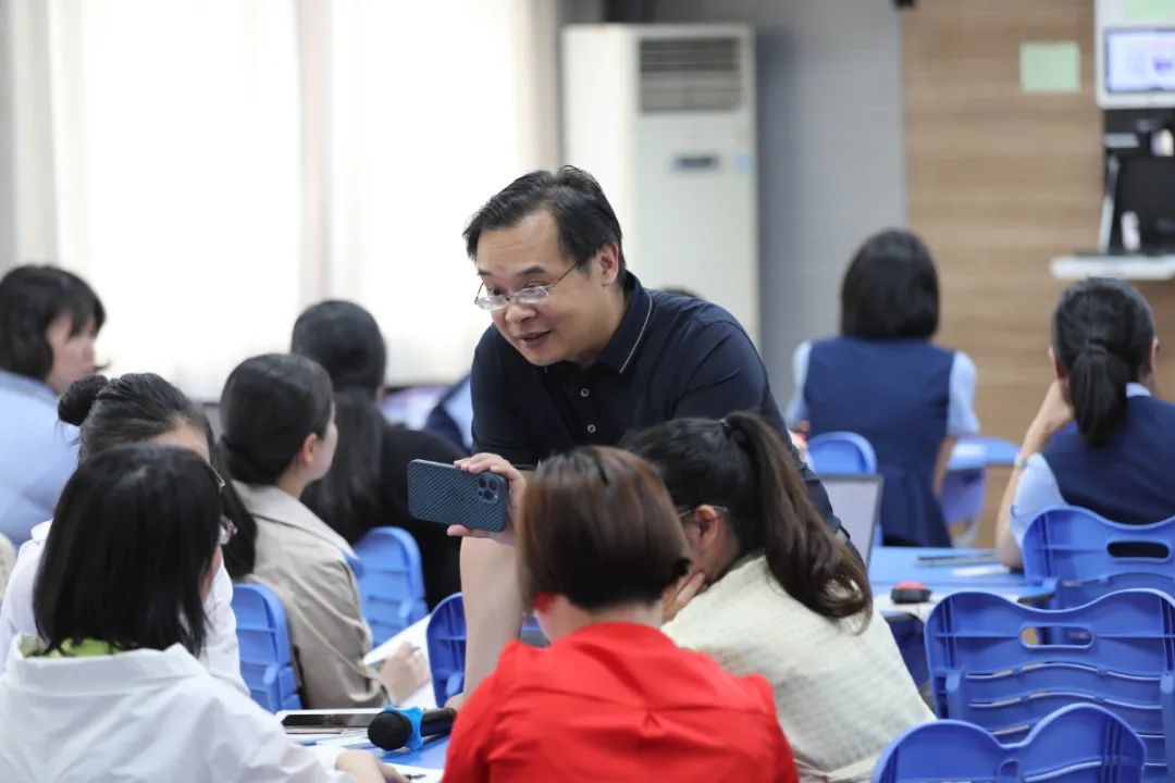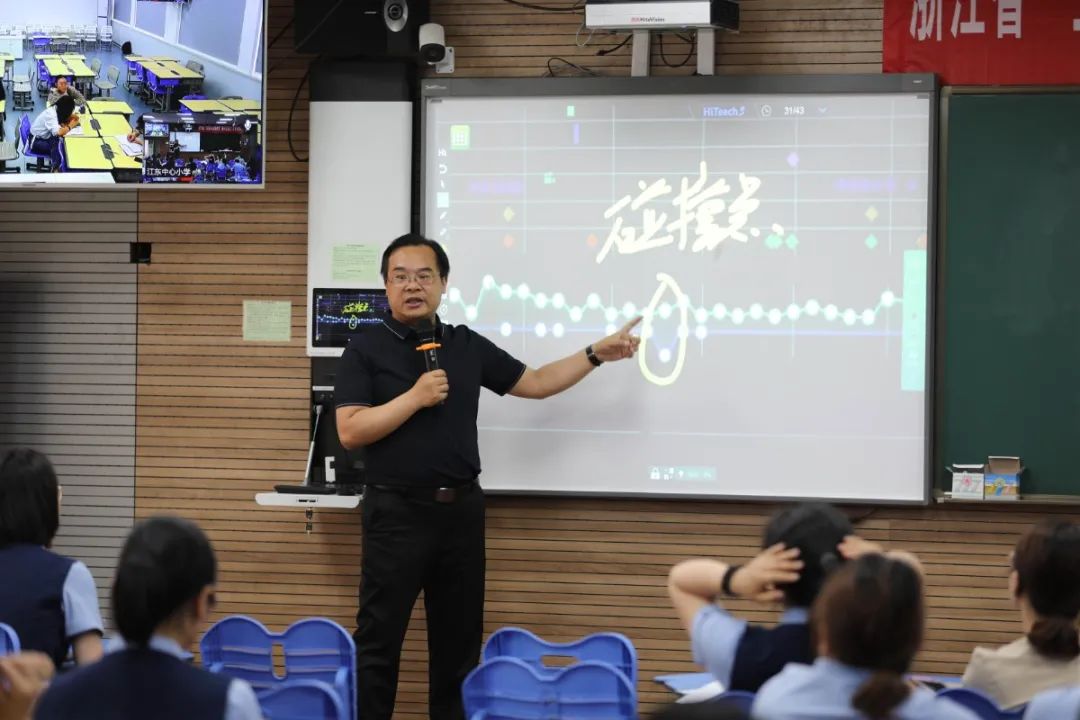 活動(dòng)的最后由全球醍摩豆智慧教育研究院的秘書長(zhǎng)劉彬教授作專題報(bào)告:《技術(shù)賦能的“教-學(xué)-研”新生態(tài)》。劉教授提出智慧教育是基于技術(shù)的,運(yùn)用可視化技術(shù)進(jìn)行教材的呈現(xiàn),運(yùn)用高交互、大數(shù)據(jù)技術(shù)組織學(xué)習(xí)活動(dòng),進(jìn)行精準(zhǔn)教學(xué),及時(shí)調(diào)整課堂教學(xué)策略的同時(shí)讓教學(xué)效果得到提升。他還以兩節(jié)課堂中線上線下百余位教師評(píng)課數(shù)據(jù)為基礎(chǔ),向參與的老師們現(xiàn)場(chǎng)演示信息技術(shù)下基于數(shù)據(jù)的實(shí)證教研,以互動(dòng)交流的形式讓老師們體驗(yàn)和感受“數(shù)據(jù)教研議課廳”的樣態(tài),拓展了老師們的教研思路,受到老師們的歡迎和好評(píng)。