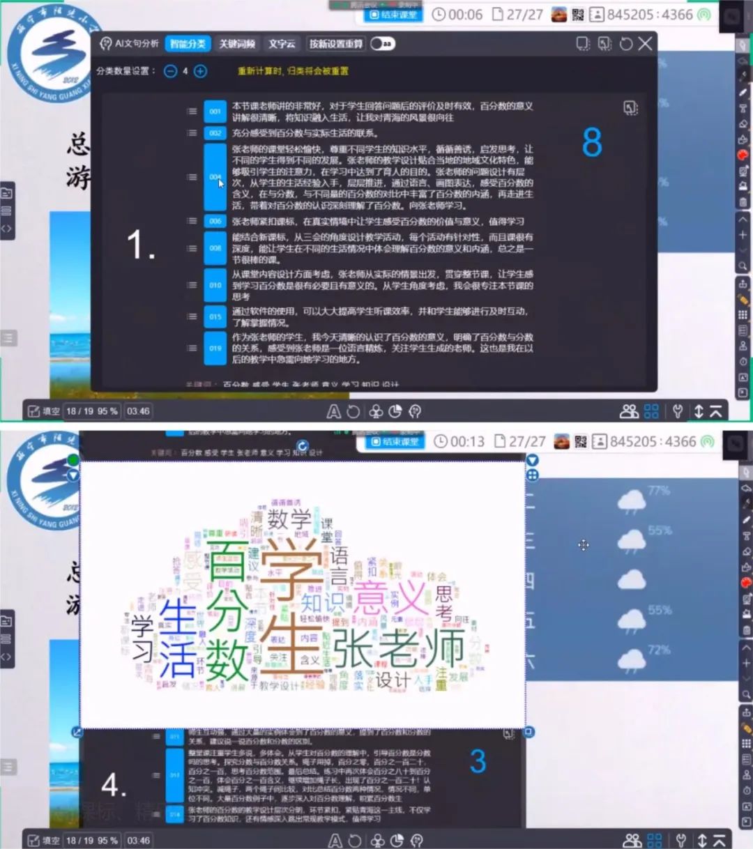 2022年11月20日,由《中國(guó)教育學(xué)刊》雜志社指導(dǎo),醍摩豆智慧教育研究院、醍摩豆AI智慧學(xué)校聯(lián)盟主辦,西寧市陽(yáng)光小學(xué)承辦,陜西、青海、山西三省五市六所學(xué)校協(xié)同開(kāi)展的“聚焦新課標(biāo) 精研智慧課”為主題的小學(xué)數(shù)學(xué)學(xué)科第六期教師教學(xué)交流分享活動(dòng)成功舉辦,活動(dòng)受到了全國(guó)各地4000多人同步觀摩。 此次活動(dòng)參與線上教研的團(tuán)隊(duì)有寶雞高新第三小學(xué)、楊凌高新小學(xué)、西安經(jīng)開(kāi)第八小學(xué)、長(zhǎng)治市潞州區(qū)淮海小學(xué)校、西安市浐灞實(shí)驗(yàn)小學(xué)。同時(shí),城西區(qū)黃河路小學(xué)、西寧市城西區(qū)文逸小學(xué)等學(xué)校也進(jìn)行線上觀摩學(xué)習(xí)。 陽(yáng)光小學(xué)張芳老師進(jìn)行了六年級(jí)數(shù)學(xué)《認(rèn)識(shí)百分?jǐn)?shù)》的課堂教學(xué)展示。課堂緊密聯(lián)系生活實(shí)際,讓學(xué)生深刻地體會(huì)到了數(shù)學(xué)來(lái)源于生活,應(yīng)用于生活。整節(jié)課張老師時(shí)刻與學(xué)生互動(dòng),關(guān)注學(xué)生的掌握情況和學(xué)生知識(shí)的構(gòu)建。