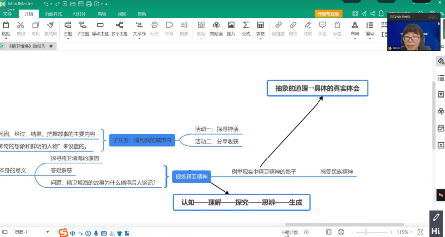 隨后,范長(zhǎng)京老師以《關(guān)注心靈體驗(yàn) 讓神話激揚(yáng)生命》為主題針對(duì)《精衛(wèi)填?!芬徽n從課程設(shè)計(jì)、技術(shù)應(yīng)用、人文精神、核心素養(yǎng)四方面進(jìn)行了微報(bào)告,范老師以思維導(dǎo)圖的形式,清晰展示了課程設(shè)計(jì)的思路、意圖等。