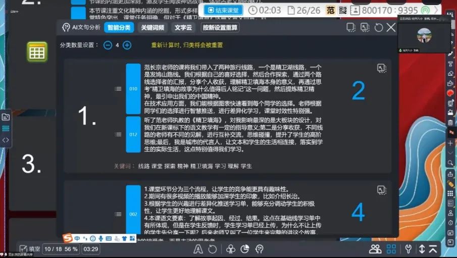 范老師結(jié)合山西長(zhǎng)治歷史文化,以小神話大精神創(chuàng)設(shè)主題情境,圍繞“一個(gè)故事一座城我是城市代言人”大任務(wù),通過(guò)選擇旅游路線、分享旅行收獲等小任務(wù)進(jìn)行教學(xué)設(shè)計(jì),讓學(xué)生通過(guò)長(zhǎng)治的“發(fā)鳩山”、“精衛(wèi)湖”課堂緊密聯(lián)系生活實(shí)際,學(xué)習(xí)《精衛(wèi)填?!返膬?nèi)涵,設(shè)計(jì)新穎,突顯語(yǔ)文核心素養(yǎng)。授課中,范老師熟練運(yùn)用醍摩豆智慧教室的“小組積分” “隨機(jī)挑人”“即問(wèn)即答” “搶權(quán)”“計(jì)時(shí)器”等技術(shù)激發(fā)學(xué)生的學(xué)習(xí)熱情,答題時(shí)是采用 “拍照上傳”“錄音上傳”等技術(shù)自動(dòng)匯整數(shù)據(jù),根據(jù)學(xué)生選擇,“智慧推送”學(xué)習(xí)資料等,與學(xué)生有效互動(dòng),把握了學(xué)生課堂學(xué)習(xí)情況,突出學(xué)生的主體地位。