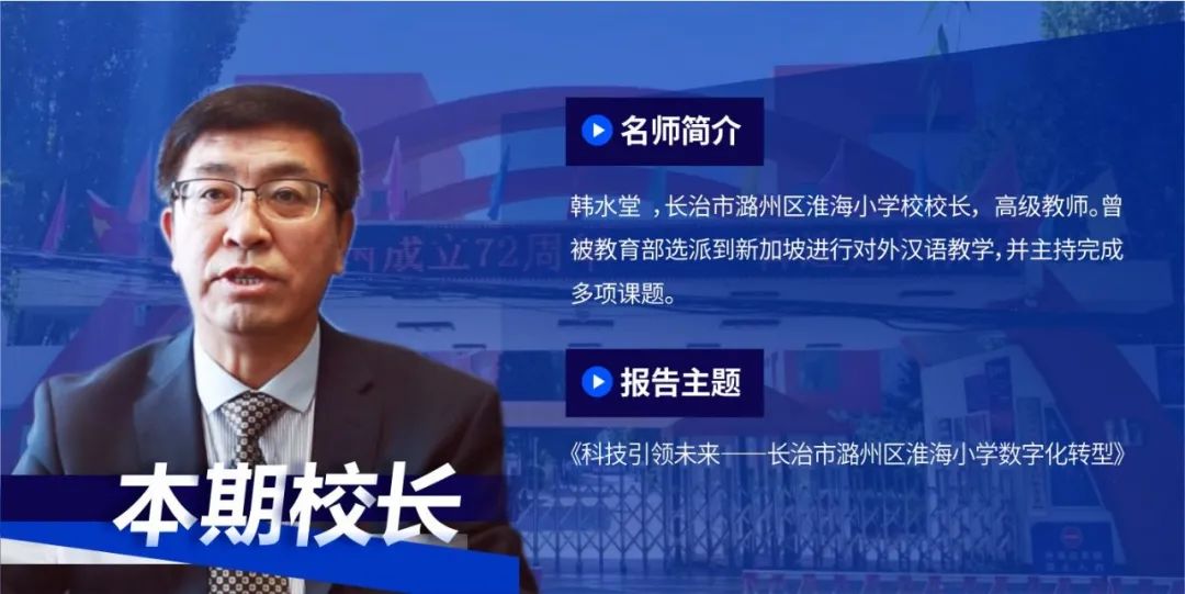 最后,長(zhǎng)治市潞州區(qū)淮海小學(xué)校韓水堂校長(zhǎng)以《科技引領(lǐng)未來(lái)——長(zhǎng)治市潞州區(qū)淮海小學(xué)數(shù)字化轉(zhuǎn)型》為題進(jìn)行了分享。韓校長(zhǎng)從學(xué)校簡(jiǎn)介、什么是數(shù)字化轉(zhuǎn)型、為什么數(shù)字化轉(zhuǎn)型、如何進(jìn)行數(shù)字化轉(zhuǎn)型分享了淮海小學(xué)的數(shù)字化轉(zhuǎn)型之路,學(xué)校從2019年引入醍摩豆智慧教育系統(tǒng),目前已在數(shù)字化轉(zhuǎn)型之路上邁出了一大步,對(duì)正在探索智慧教育的學(xué)校,很有借鑒意義。