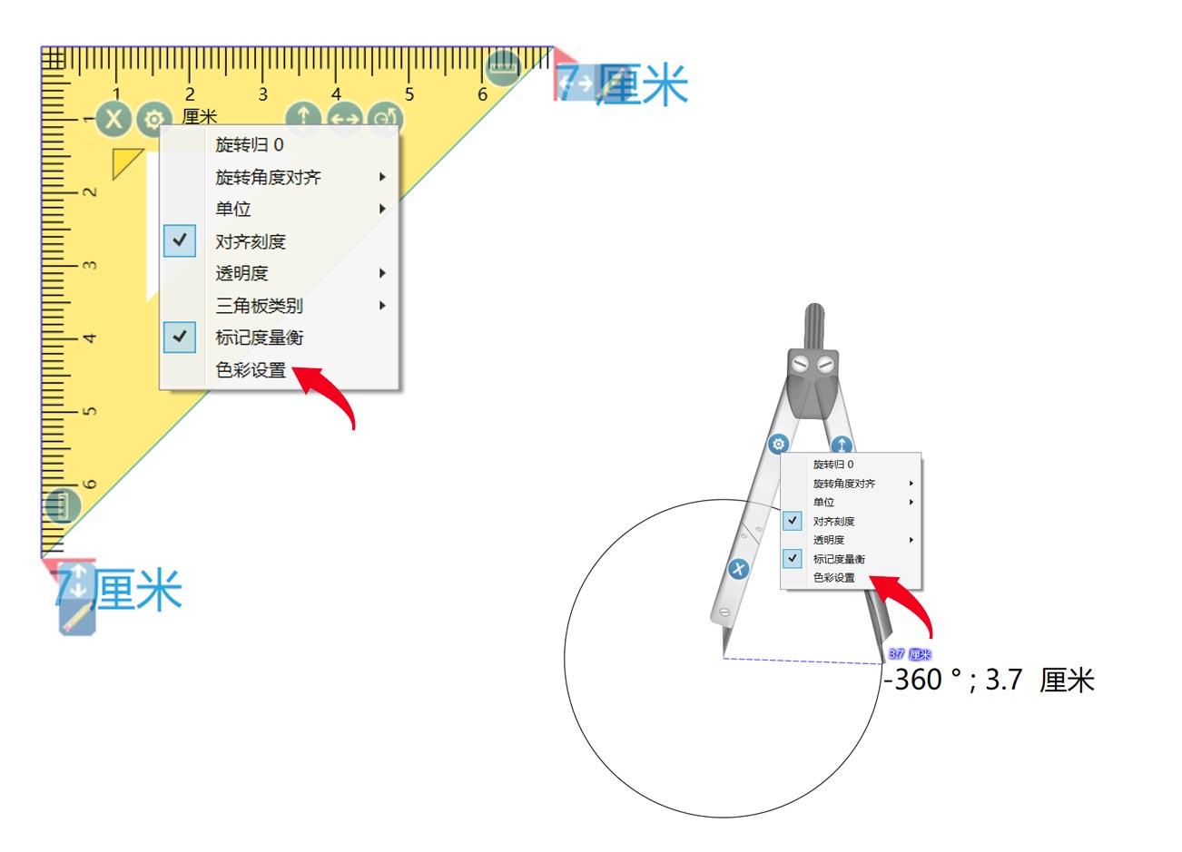 ?9.幾何圖形、教具(直尺、三角板、圓規(guī)..) 畫出的圖形可調(diào)整顏色、教具線條可調(diào)粗細(xì)