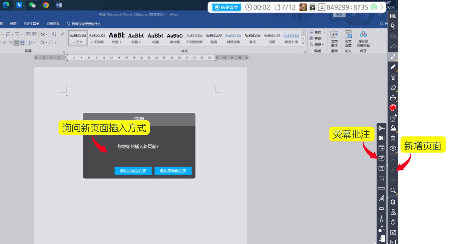 ?5.熒幕批注模式下新增頁面詢問(批注頁或空白頁)