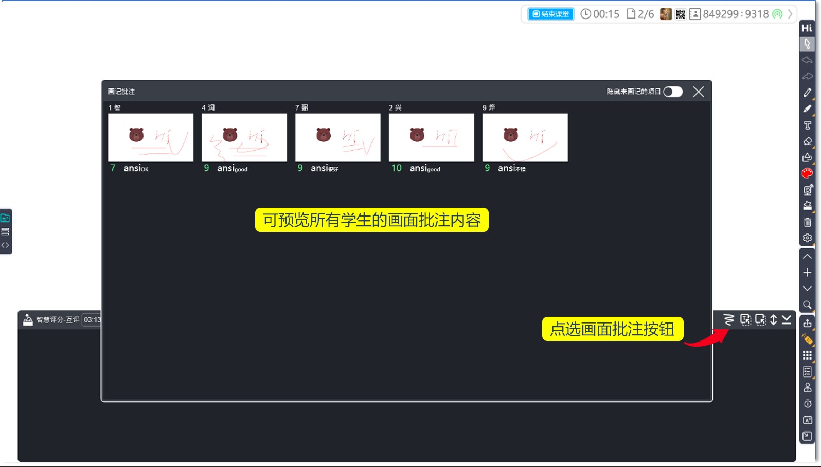 可預(yù)覽所有學(xué)生被評(píng)后的畫記批注內(nèi)容