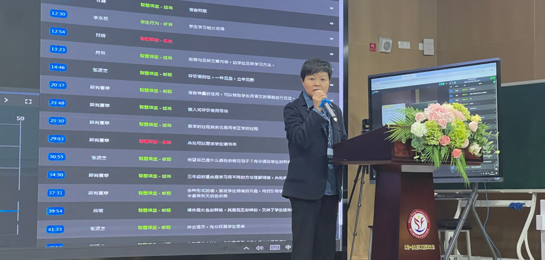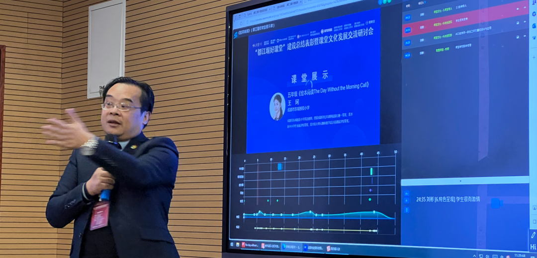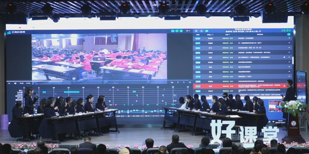 觀摩老師和點(diǎn)評(píng)專家一邊聽課,一邊使用蘇格拉底議課APP打點(diǎn)標(biāo)記,評(píng)課議課,課例展示結(jié)束后,成都高新區(qū)西芯小學(xué)副校長(zhǎng)許曉琴、都江堰市光明團(tuán)結(jié)小學(xué)副校長(zhǎng)代益梅、龍泉驛區(qū)教育科學(xué)研究院小學(xué)部部長(zhǎng)黃偉、醍摩豆智慧教育研究院秘書長(zhǎng)劉彬分別語文、數(shù)學(xué)(一)、數(shù)學(xué)(二)、英語會(huì)場(chǎng)的課例進(jìn)行了精彩的分析和點(diǎn)評(píng),也與參與觀摩的老師進(jìn)行了互動(dòng)交流。