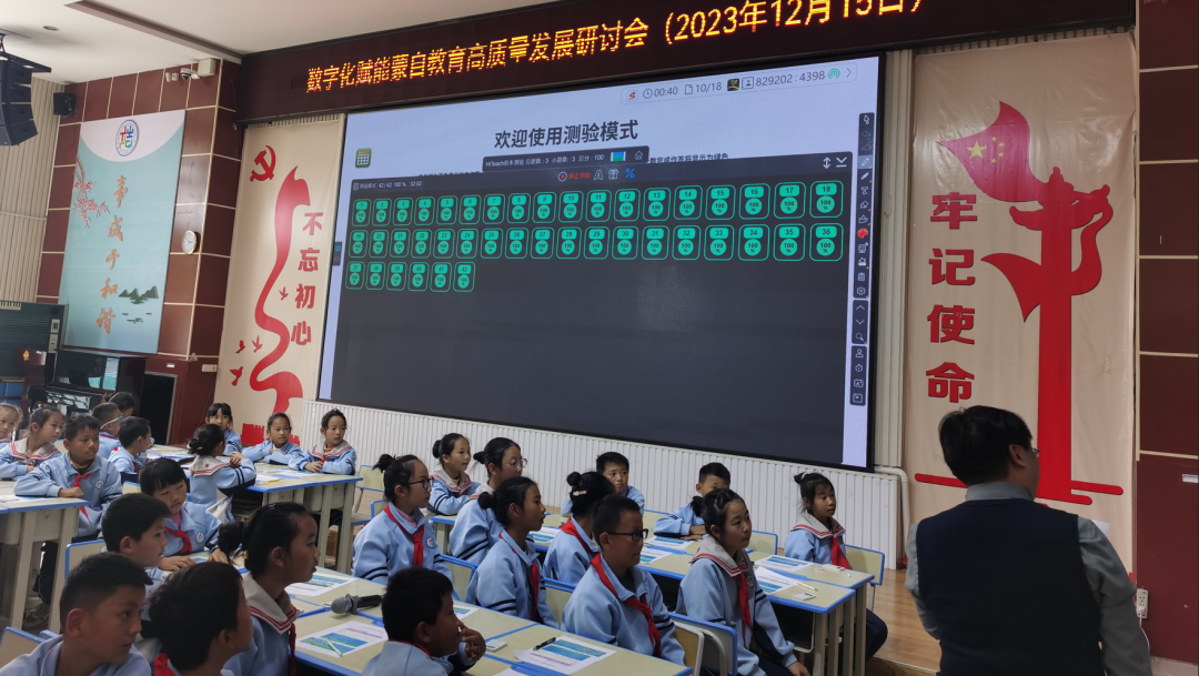 為進一步推進教育數(shù)字化全局性變革,實現(xiàn)更加公平、高質(zhì)量的教育,12月15日,“數(shù)字化賦能蒙自教育高質(zhì)量發(fā)展”研討會在蒙自市團結(jié)小學順利召開。紅河州教育科學研究所所長白斗、蒙自市教育體育局局長張愛林、蒙自市教育體育局副局長王家陽,《中國教育學刊》四川省學用刊中心主任陳權(quán)、副主任劉彬,中國移動通信集團云南有限公司紅河分公司等本地信息化企業(yè)代表,全市義務階段學校校長、教學副校長、教務主任共計140余人參加。 研討會由蒙自市教育體育局副局長王家陽主持,分兩個階段進行?;顒拥谝浑A段,劉彬教授作課小學四年級數(shù)學《長方形和正方形周長與面積的整理復習》,結(jié)合反饋器和HiTeach5智慧教學系統(tǒng)與學生開展互動。課程結(jié)束,參會教師通過蘇格拉底教研平臺與劉教授進行實地教研,整個教學展示活動體現(xiàn)課堂教學評的一致性,完整呈現(xiàn)出以數(shù)據(jù)為支撐的課堂精準評價。