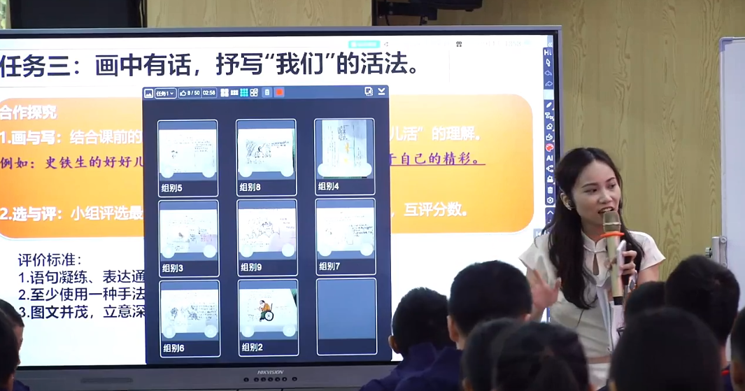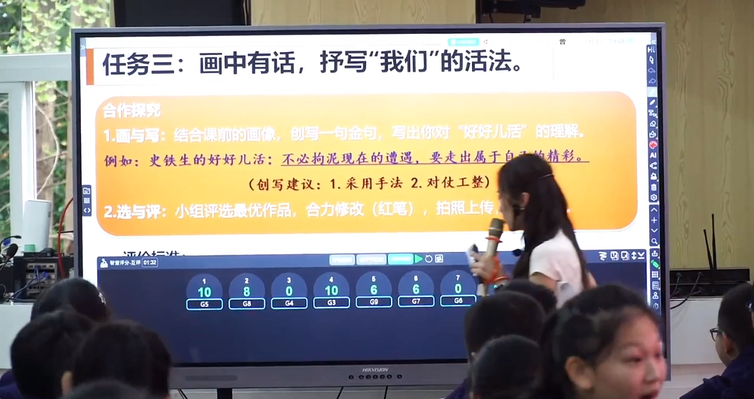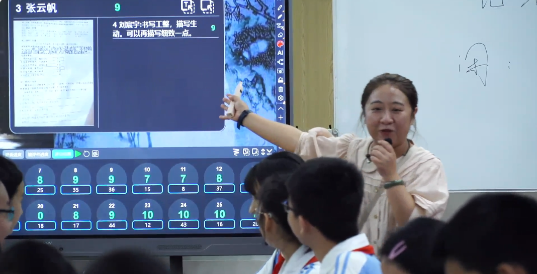 在課堂展示環(huán)節(jié),成都市青羊區(qū)教育科學(xué)研究院附屬實(shí)驗(yàn)學(xué)校的曾絲雨老師帶來了一堂生動(dòng)的七年級(jí)語文課《秋天的懷念》,曾老師善用HiTeach 5智慧教學(xué)系統(tǒng)的即問即答、作品觀摩、智慧互評(píng)等工具,數(shù)字賦能,帶領(lǐng)學(xué)生探究課文,領(lǐng)悟生命。