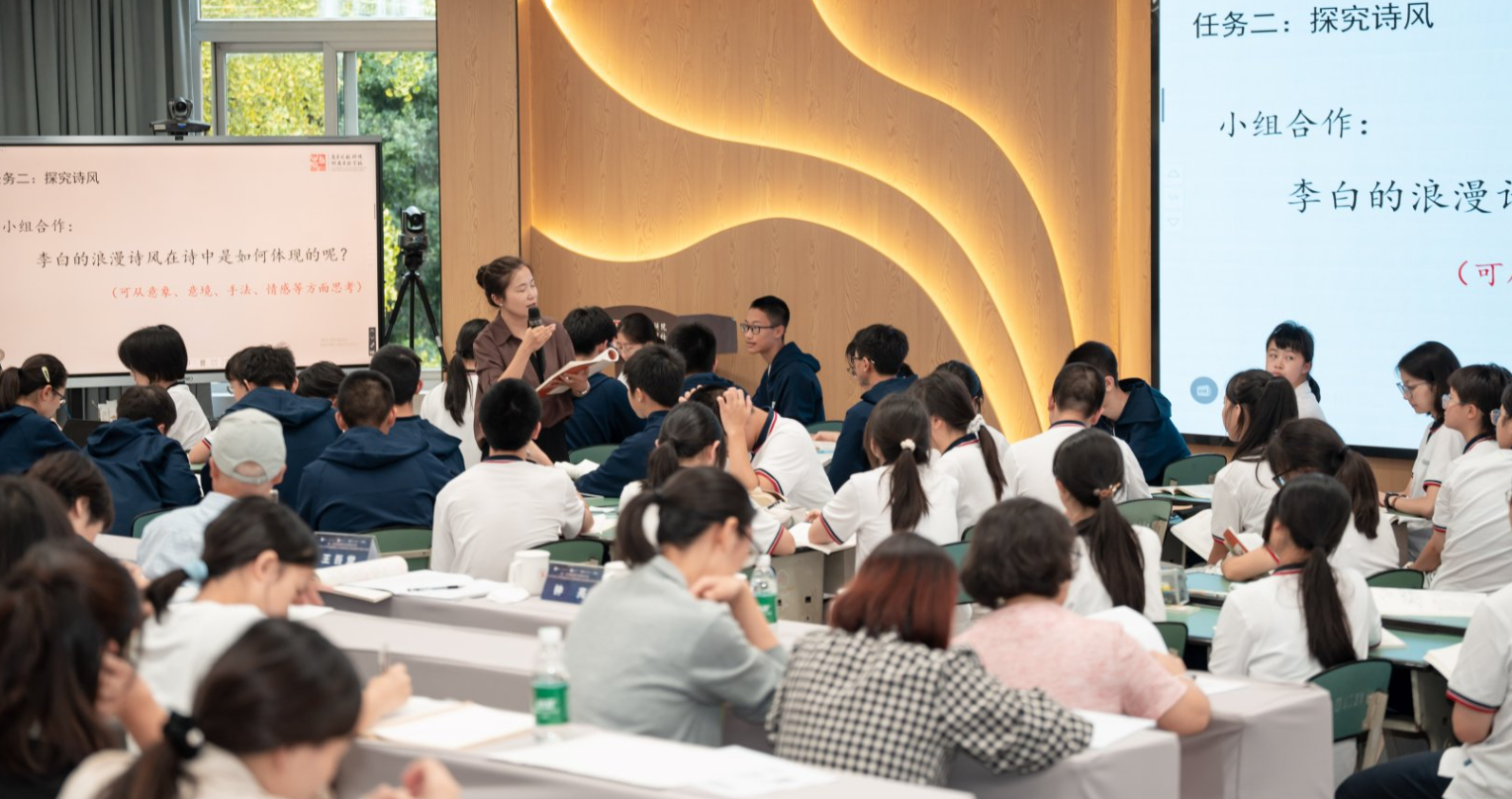在陳懷宇老師主持的高中分會(huì)場(chǎng)上,兩節(jié)現(xiàn)場(chǎng)課分別由都江堰市青城山高級(jí)中學(xué)的朱彥平老師和成都市青羊區(qū)教育科學(xué)研究院附屬實(shí)驗(yàn)學(xué)校的江虹老師執(zhí)教。朱彥平老師通過《鄉(xiāng)土中國(guó)——差序格局》一課,帶領(lǐng)學(xué)生探究了鄉(xiāng)土中國(guó)的差序格局對(duì)中國(guó)現(xiàn)當(dāng)代化社會(huì)產(chǎn)生的影響。而江虹老師則以《夢(mèng)游天姥吟留別》為例,帶領(lǐng)學(xué)生領(lǐng)略了李白浪漫的詩風(fēng)。