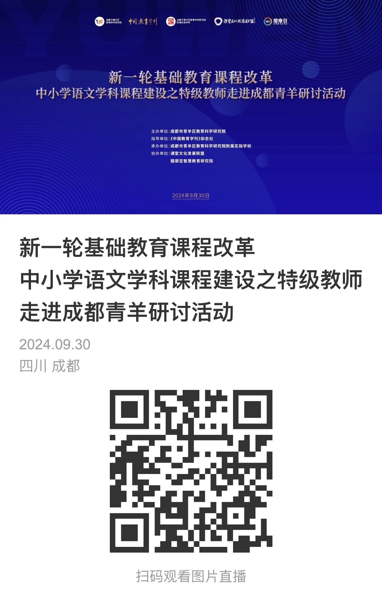 2024年9月30日,“新一輪基礎(chǔ)教育課程改革中小學(xué)語文學(xué)科課程建設(shè)之特級(jí)教師走進(jìn)成都青羊研討活動(dòng)”在成都市青羊區(qū)教育科學(xué)研究院附屬實(shí)驗(yàn)學(xué)校成功舉行。此次研討活動(dòng)旨在探討“雙新”“雙減”政策背景下中小學(xué)語文教學(xué)的課程建設(shè)、課堂教學(xué)及評(píng)價(jià)方式的新路徑與新策略,吸引了來自成都市及全國(guó)各地的眾多教育專家、校長(zhǎng)、教師及教育行政管理人員參與。
