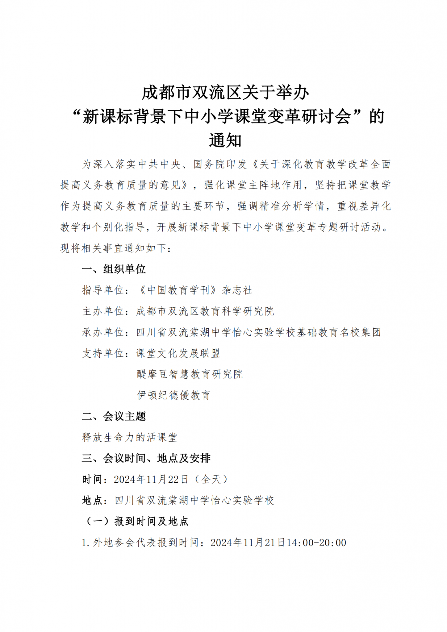 【活動通知】成都市雙流區(qū)關(guān)于舉辦“新課標背景下中小學課堂變革研討會”的通知