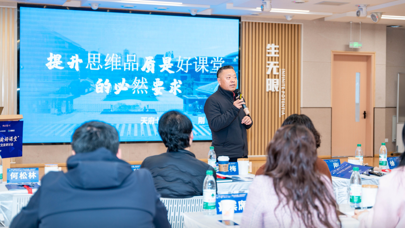 天府第七中學校長陳剛 圓桌論壇環(huán)節(jié),在成都師范學院徐猛教授的引領(lǐng)下,四川天府新區(qū)第八小學校長羅艷梅、青海省西寧市城西區(qū)虎臺小學校長周靜、北京第二外國語學院成都附屬小學北區(qū)學校副書記陳權(quán)莉、成都高新區(qū)尚陽小學校長楊琳玲圍繞 “課堂文化建設(shè)與教師專業(yè)成長” 這一主題展開了熱烈而深入的討論。